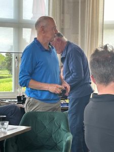 Äntligen skönt väder och med det kom de bra resultaten. Det var ett rent nöje att notera Mats G resultat hål för hål i Klass A. Lite nervöst blev jag (och kanske Mats?) när ett bunkerbesök på 15:e ledde till en bogey och han sedan var i bunker igen på 16:e, skulle det börja rasa nu? Men ett mästerligt sandslag från svårt läge gav ett nytt par och jag (vi?) kunde slappna av. 3 birdies, 2 bogeys och 13 par, brutto 35 + 35 =70 och 1 under banans par.