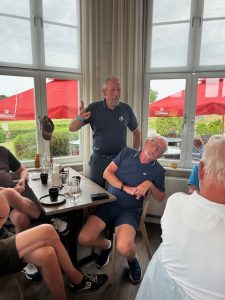 34 deltagare tog sig ann dagens utmaning med först värme och på slutet några regndroppar. Greenerna var dressade vilket kan ha påverkat några spelare men inte dagens segrare som spelade mycket bra. Som omväxling fick vi äta en mycket god firre efter tävlingen vilket flera uppskattade. Vinstbollarna lyser fortfarande med sin frånvaro och eventuellt kan byte av märke leda till att vi får våra bollar men tidigast i augusti. Tråkigt!
